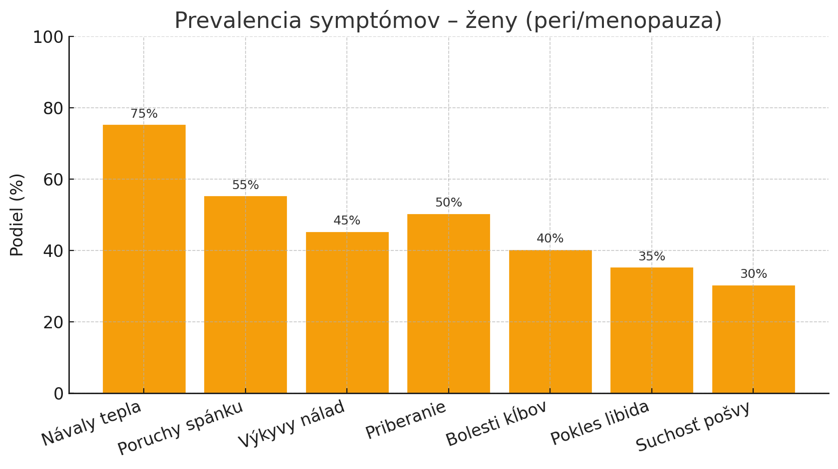 U žien postupne klesá tvorba estrogénu a progesterónu. Zmeny bývajú kolísavé, preto sa príznaky objavujú vo vlnách. Estrogén chráni cievy a kosti, vplýva na termoreguláciu, kolagén v koži, aj na citlivosť mozgu na neurotransmitery. Progesterón je prirodzený upokojujúci protihráč estrogénu a často súvisí so spánkom a úzkosťou. Keď tieto hormóny klesajú, telo hľadá novú rovnováhu.